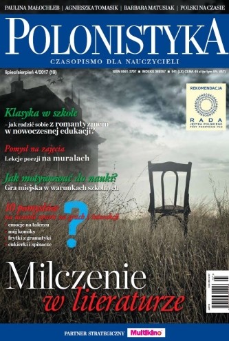 Tematem przewodnim dwudziestego siódmego wydania „Polonistyki” jest milczenie w literaturze. Dlaczego pisarze zachowują milczenie? Na to pytanie odpowiada dr Paulina Małochleb w felietonie otwierającym niniejszy numer czasopisma. Motyw milczenia w świecie przysłów i książek analizuje dr Marzena Tyl w artykule pt. „Dlaczego postanowili milczeć? Lektura «Nowych szat cesarza» Hansa Christiana Andersena na spotkaniu w bibliotece”, zaś Tomasz Fijałkowski przekazuje czytelnikom gotowy konspekt zajęć zatytułowany „Przejawy milczenia w literaturze”.